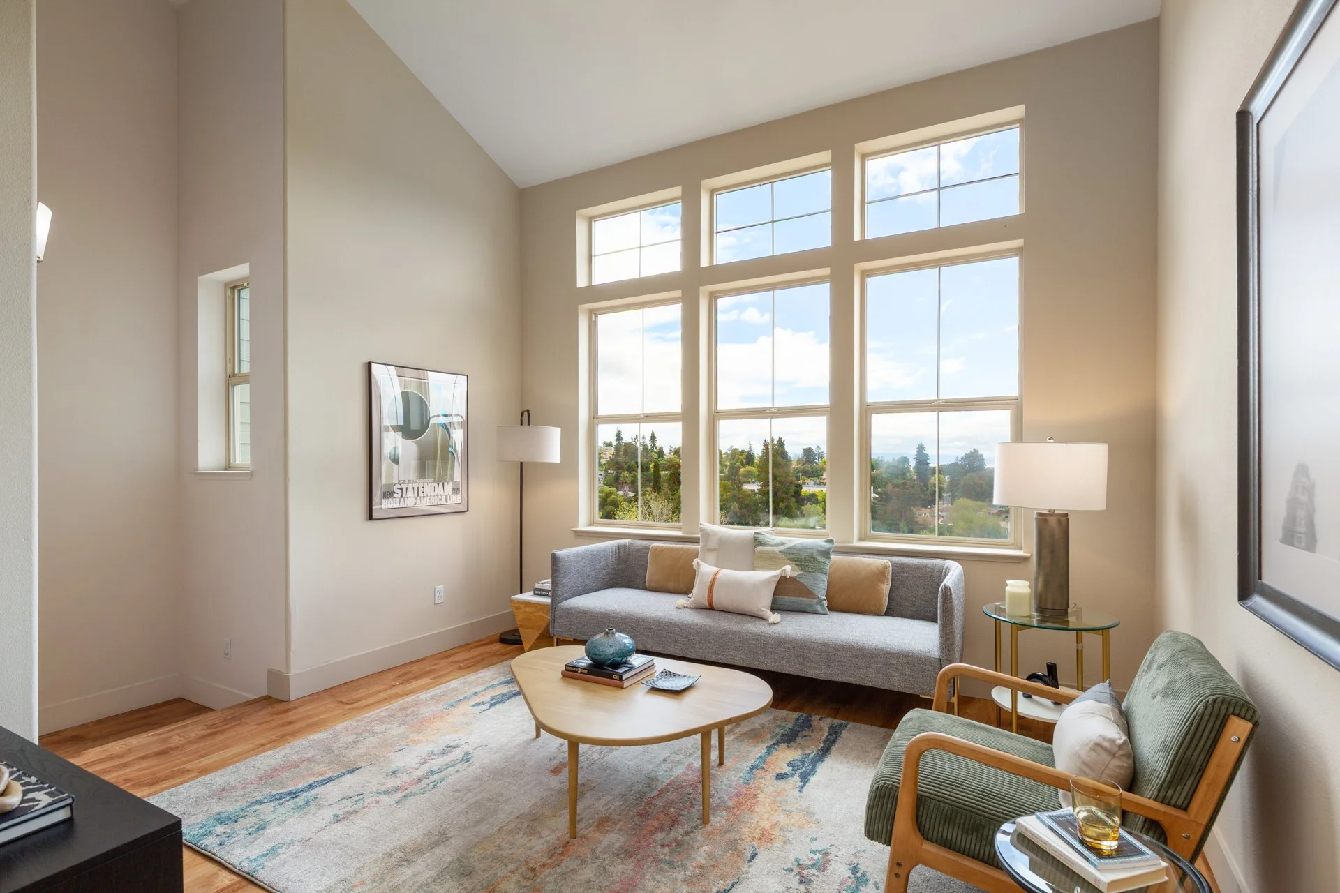 This light-filled corner unit is perched in the beautiful Monte Vista Villas community in the Oakland Hills, offering sweeping, unobstructed Bay views. With three spacious bedrooms and three full bathrooms, this tri-level townhome features an open-concept living area with soaring ceilings, recessed lighting, and warm-toned cabinetry that complements the modern finishes throughout.